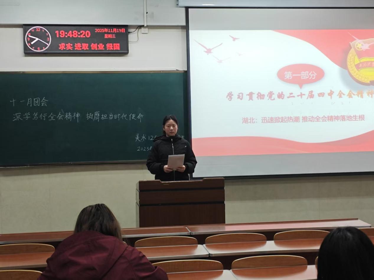 笃行实干贯彻精神,勇担时代发展重任;围绕“深学笃行全会精神,挺膺担当时代使命”专题,各支部引导青年关注湖北省委贯彻落实全会精神的决策部署,特别是关于推进高等教育“双一流”建设、服务战略支点的地方实践。结合艺术学科特色与公司发展实际,团员青年们展开热烈研讨,深刻认识到新时代赋予艺术学子的特殊责任。大家一致认为,挺膺担当不仅需要扎实的专业功底,更需要宽广的时代视野和主动的服务意识。要自觉将学习贯彻全会精神转化为推动艺术创作创新、促进校园文化繁荣、服务社会美育需求的实际行动,在攀登艺术高峰的征程中,努力成为先进文化的践行者、社会风尚的引领者,让青春在投身国家与区域高质量发展的火热实践中绽放绚丽之花。