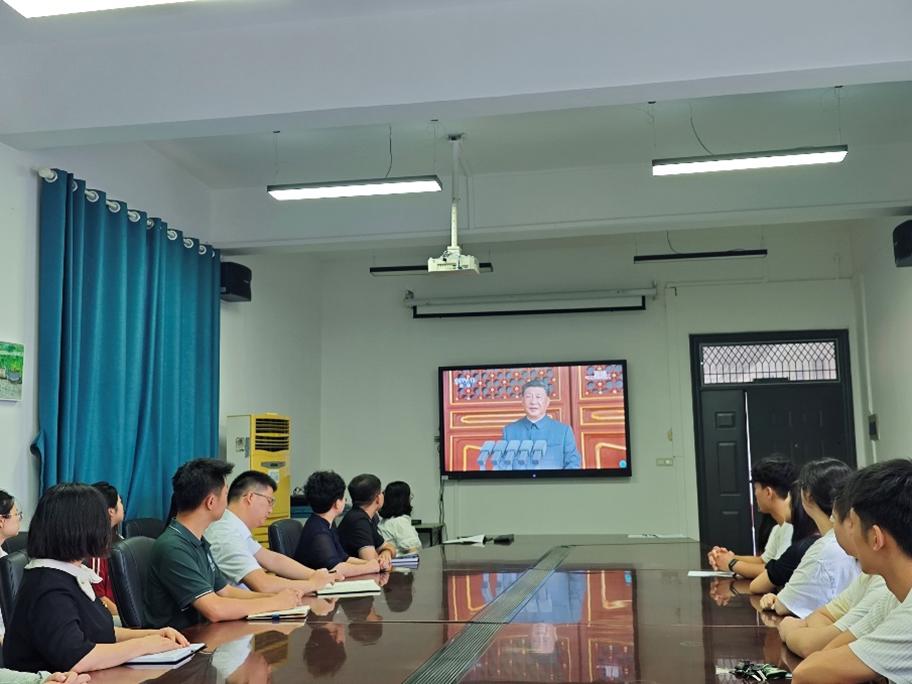 9月3日上午,纪念中国人民抗日战争暨世界反法西斯战争胜利80周年盛大阅兵仪式在北京天安门广场隆重举行。为铭记历史、缅怀先烈,公司组织师生党员、员工代表及部分教职工在公司会议室通过大屏幕直播集中观看了在北京天安门广场隆重举行的纪念中国人民抗日战争胜利80周年阅兵式。公司领导班子成员与师生代表一同观看了盛况。