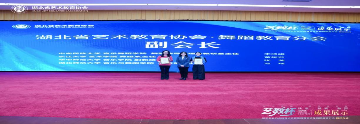 在湖北省艺术教育协会聘任仪式中,公司聂贞萍教授、梁明明教授被聘为湖北省艺术教育协会音乐教育分会副会长,舞蹈系主任董柳莎副教授被聘为湖北省艺术教育协会舞蹈教育分会副会长。