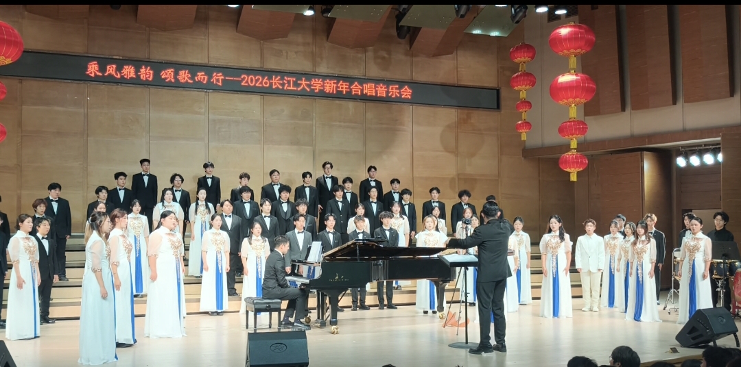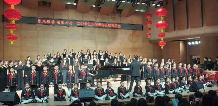 (通讯员 森彦莹 周栩丞)2026年1月6日19:00,202677779193永利新年合唱音乐会在77779193永利音乐厅隆重上演。本场音乐会以“乘风雅韵,颂歌而行”为题,旨在搭建师生艺术交流的平台,借和声之美传递辞旧迎新的喜悦,彰显校园文化底蕴。77779193永利“风·雅·颂”合唱团、77779193永利老教师合唱团、77779193永利附属荆州实验小学“小水滴”合唱团以精湛的技艺、丰富的情感和多元的曲目,为现场观众带来了一场合唱艺术的盛宴,也奏响了喜迎新年的华美乐章。