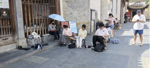 在安徽,师生首站走进西递古村,员工聚焦徽州三雕、“四水归堂”建筑特色,融入村民生活场景创作。教师明确“每日写生+晚间点评”节奏,通过“日间实践+夜间复盘”帮员工及时消化所学。